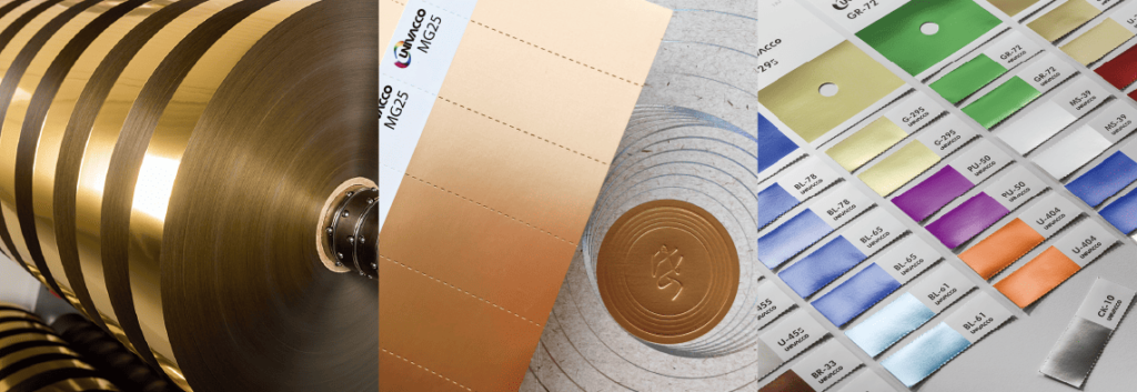 Hot stamping foils are made up of several layers, including a carrier film, a release layer, a color or metallic layer, and an adhesive layer. The foils are typically supplied in rolls and are compatible with hot stamping machines. The hot stamping process involves applying heat and pressure to transfer the foil onto a substrate. The foil is placed between the heated die and the substrate, and when pressure is applied, the foil is released from the carrier film and adheres to the surface of the substrate. The heat and pressure activate the adhesive layer, allowing the foil to bond with the substrate.